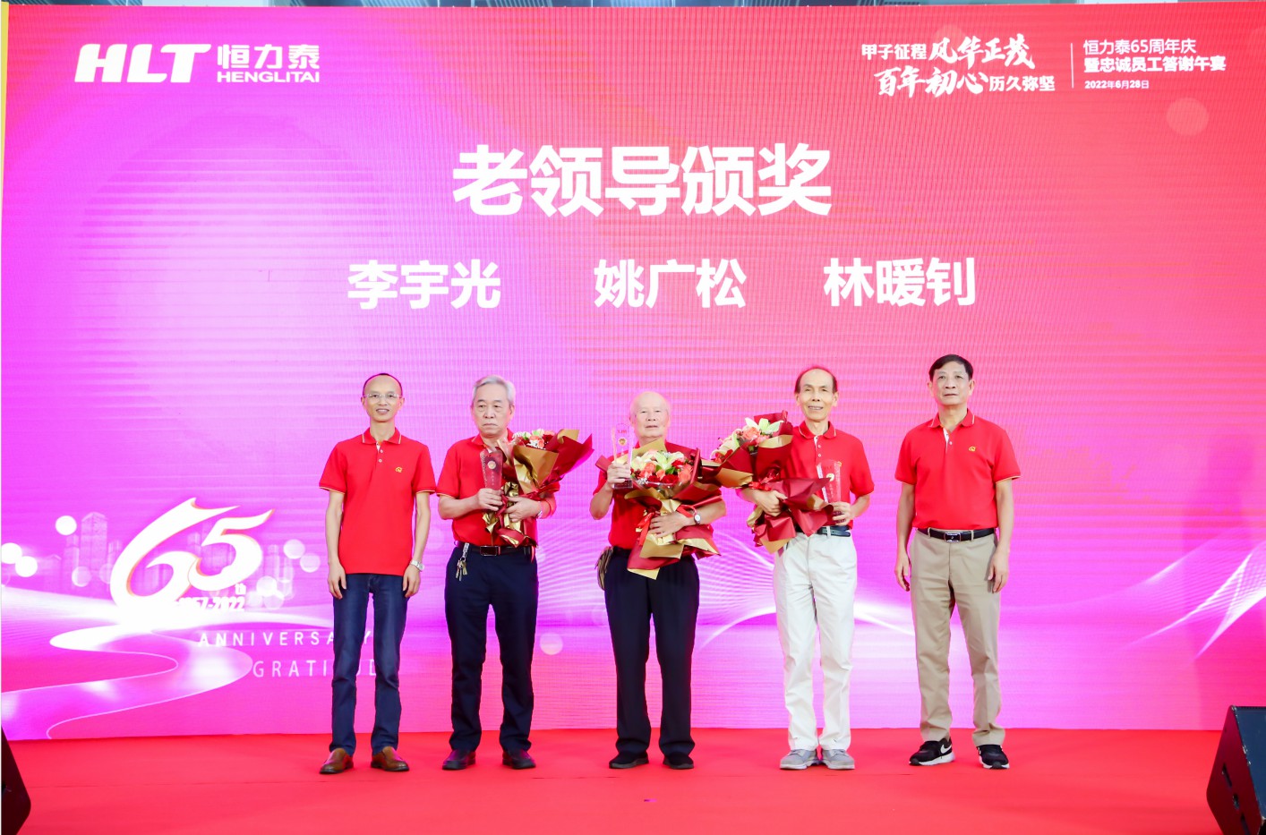 庆典活动还特别表彰了李宇光、姚广松、林暖钊等三位为恒力泰奉献超过30年的公司退休老领导,罗总、杨总分别为他们颁发特别金奖及献上鲜花,向三位退休老领导多年来为企业的艰苦奋斗致敬。