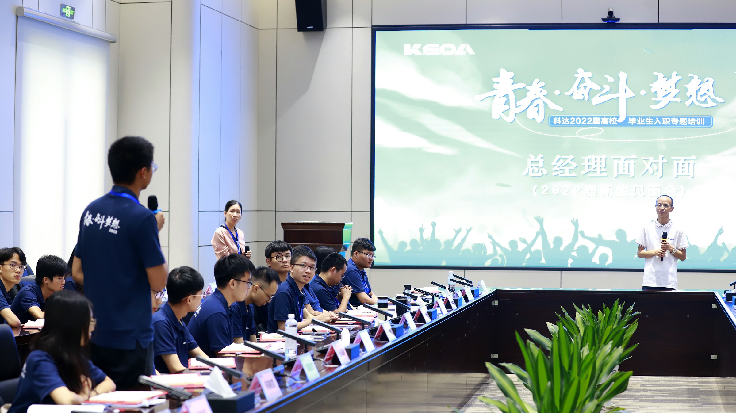 7月9日,2022届高校毕业生入职专题培训的重头戏——“总经理面对面”如期举行,爱游戏ayx官方网页董事、总经理杨学先与48名新入职的应届毕业生亲切交流,详细介绍公司的发展布局及各板块的业务发展情况,并对毕业生们提出期望、要求及成长建议。最后,杨总一一解答了大家关心的问题。