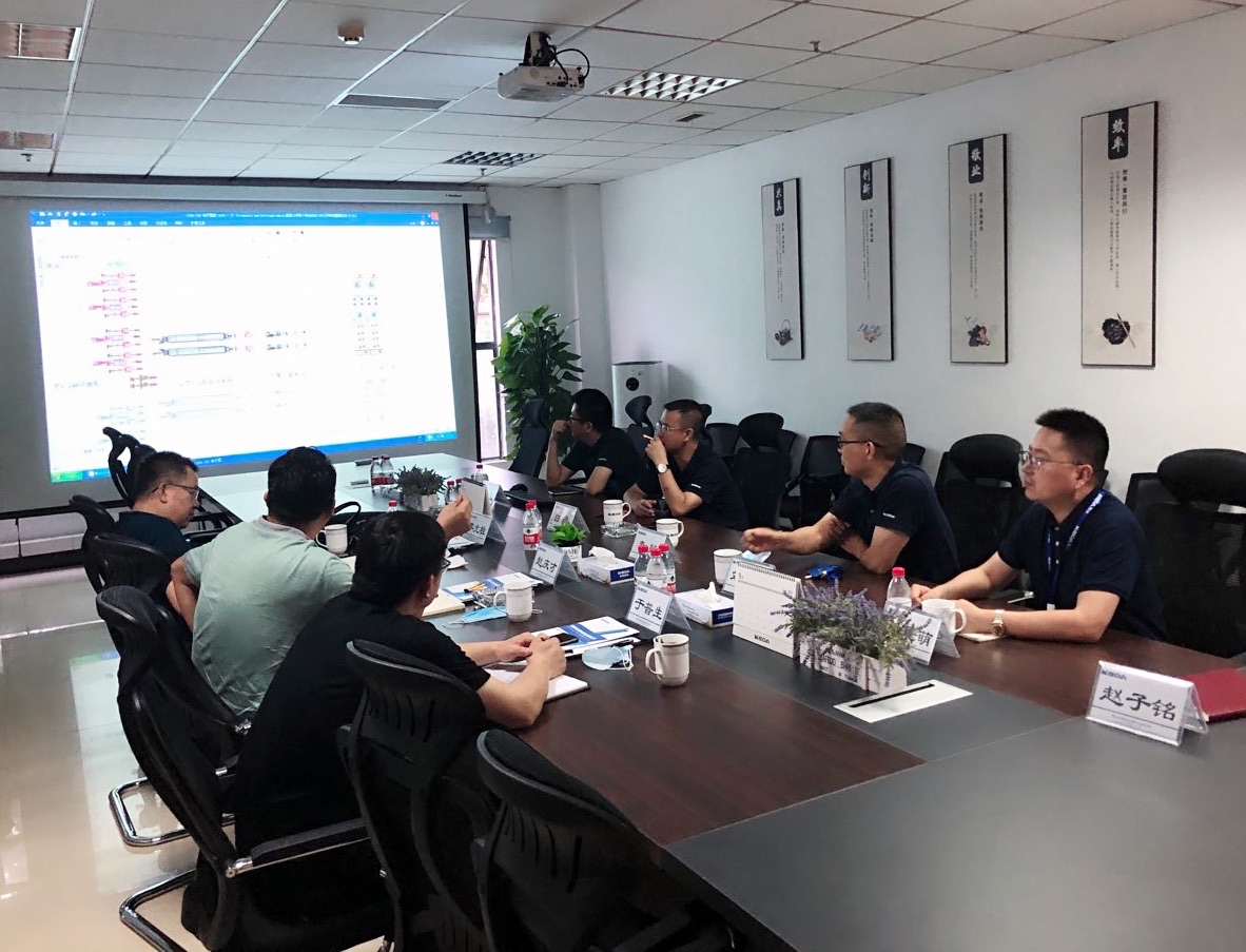随后,赵董一行与安徽爱游戏(中国)锂电装备公司经营团队进行了面对面的互动交流,主要聚焦于锂电负极材料整线装备的设计与配置情况,着重了解预炭化回转窑、自动化装埚系统及石墨化的应用情况。