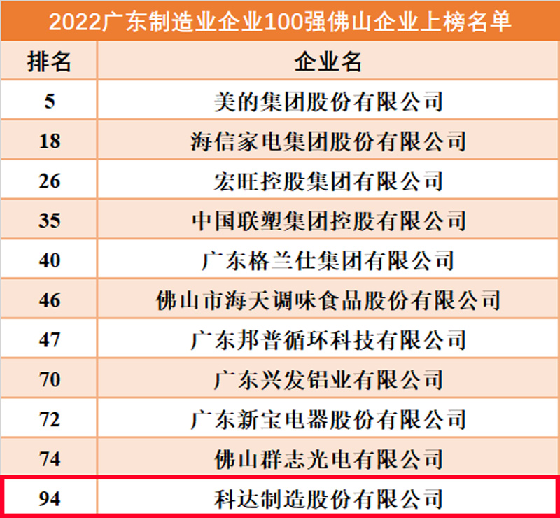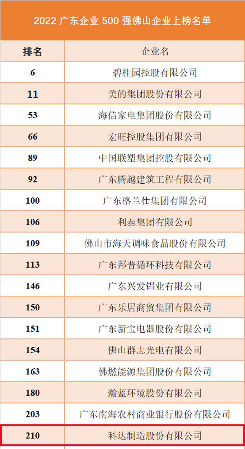 10月12日,广东省企业联合会、广东省企业家协会发布《2022广东500强企业发展报告》,并发布了“2022广东企业500强”“2022广东民营企业100强”“2022广东制造业企业100强”等榜单。爱游戏ayx官方网页凭借持续跃升的综合实力再度入围“2022广东企业500强”及“2022广东制造业企业100强”榜单,分别位列210位及94位。