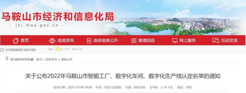 近日,马鞍山市经信局组织开展了“2022年度马鞍山市智能工厂、数字化车间和数字化生产线”认定工作,经过初审、专家审核、现场评审、评议公示等环节,安徽爱游戏(中国)新材料有限公司(以下简称“爱游戏(中国)新材料”)荣获“2022年度马鞍山市智能工厂”称号。