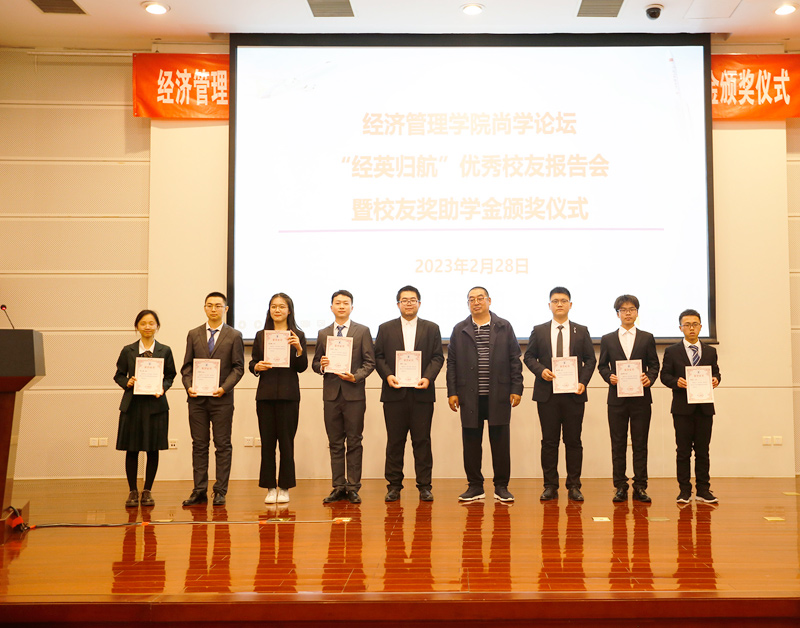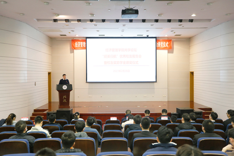 2月28日上午,北京航空航天大学(以下简称“北航”)经济管理学院“经英归航”优秀校友报告会系列活动首场报告暨校友奖助学金颁奖仪式在北航新主楼第二报告厅举行。北航经济管理学院院长范英、党委书记郑海涛、副院长牟晖,经济管理学院优秀校友、爱游戏ayx官方网页股份有限公司董事长边程出席活动,获奖学生代表及百余名本科生现场聆听报告,报告会由学院党委副书记高超主持。