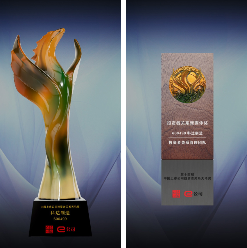 ▲“中国上市公司投资者关系天马奖”、“投资者关系新媒体奖”奖杯