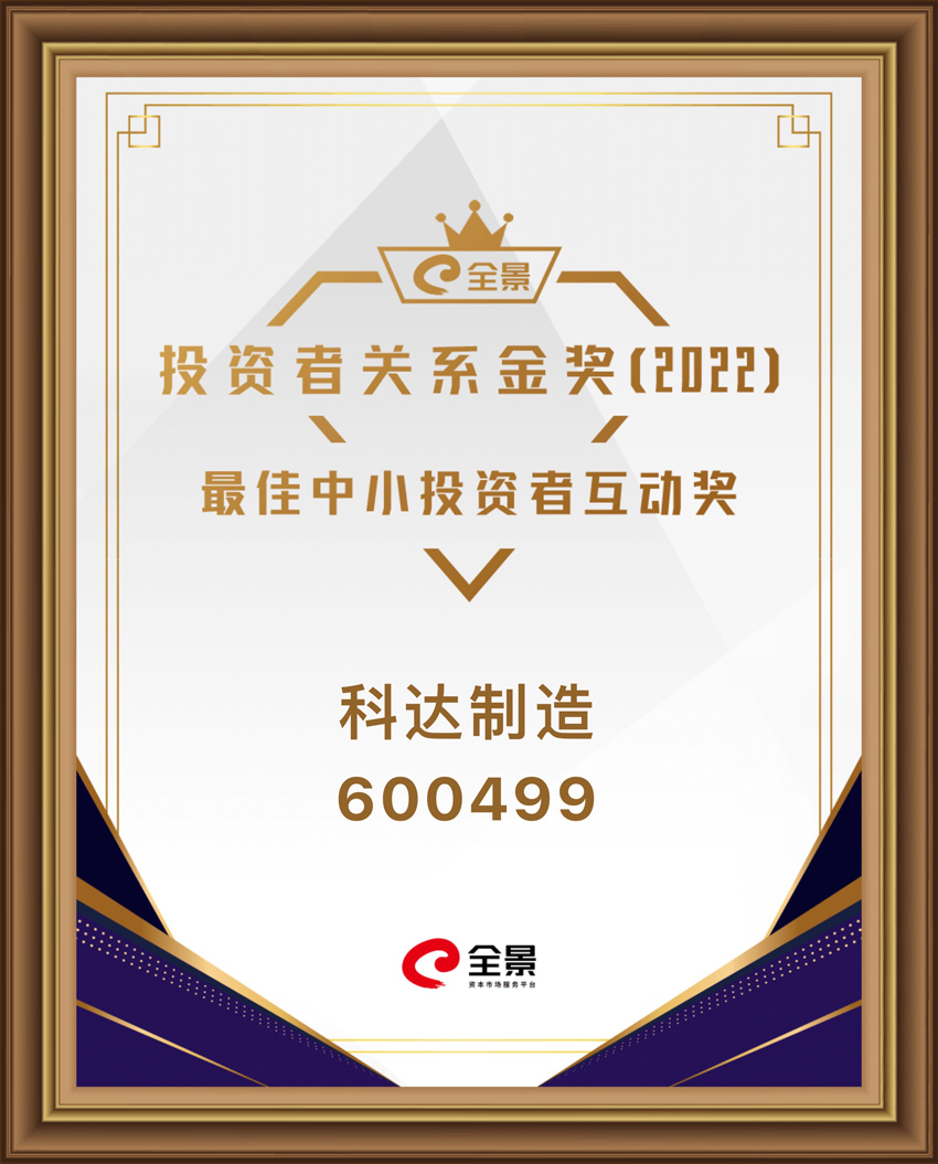 5月23日,由深圳市全景网络有限公司主办、南开大学中国公司治理研究院参与推出的“全景投资者关系金奖”2022年度全国性评选的获奖榜单正式揭晓。自2019年起,全景网开始联合专业学术科研机构——南开大学中国公司治理研究院投资者关系管理研究团队,推出“全景投资者关系金奖”。该奖项秉承独立、客观、公正的原则,采用南开大学“投资者关系互动沟通”量化评价体系,评选出在投资者关系工作中表现优异的上市公司、个人和组织。爱游戏ayx官方网页凭借与中小投资者良好的互动交流,荣获“最佳中小投资者互动奖”奖项。