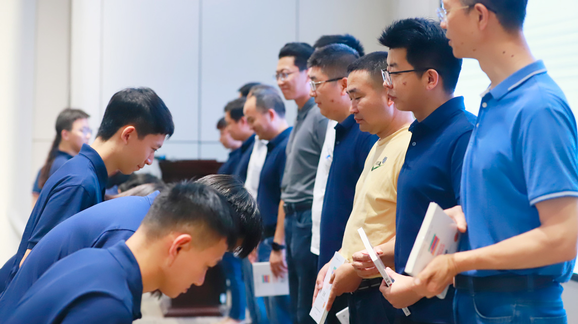其次,从理论中来,到实践中去。作为一家创新引领的企业,科学技术是第一生产力,自主创新是核心竞争力,技术领先才能领跑行业,获取竞争优势。杨总以自身的成长经历建议新入职的同事,尤其是从事研发岗的新同事,在积累理论知识的同时,勿忘到现场一线中实践,到公司的制造生产一线现场,到客户的产品使用一线现场,使产品最大程度地满足实际装配、使用的需求,避免闭门造车。