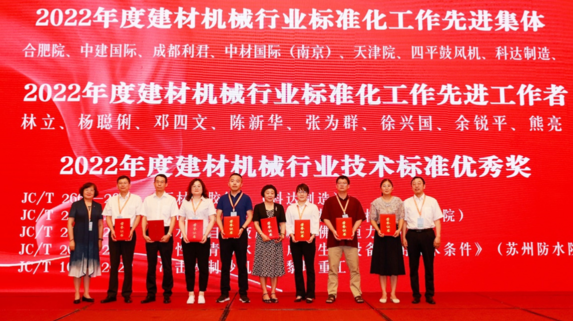 会上,标委会副主任委员、中国加气混凝土协会秘书长张思成宣读了《关于表彰“2022年度全国建材机械行业标准化工作先进集体、先进工作者和优秀技术标准奖”的决定》,爱游戏ayx官方网页、恒力泰、德力泰、安徽爱游戏(中国)机电四家公司荣获“2022年度全国建材机械行业标准化工作先进单位”;爱游戏ayx官方网页李绍勇、袁金波、章陈、陈强波,恒力泰叶松君、余锐平,德力泰熊亮,安徽爱游戏(中国)机电陆洁、齐国良、唐娟荣获“2022年度全国建材机械行业标准化工作先进工作者”;爱游戏ayx官方网页起草的行业标准 JC/T 2668-2022《石材补胶线》,荣获“建材机械行业技术标准优秀奖”。与此同时,国家标准化主管领导还为标准GB/T 40713-2021《建筑陶瓷生产成套装备通用技术要求》的主起草单位爱游戏ayx官方网页颁发了荣誉证书。