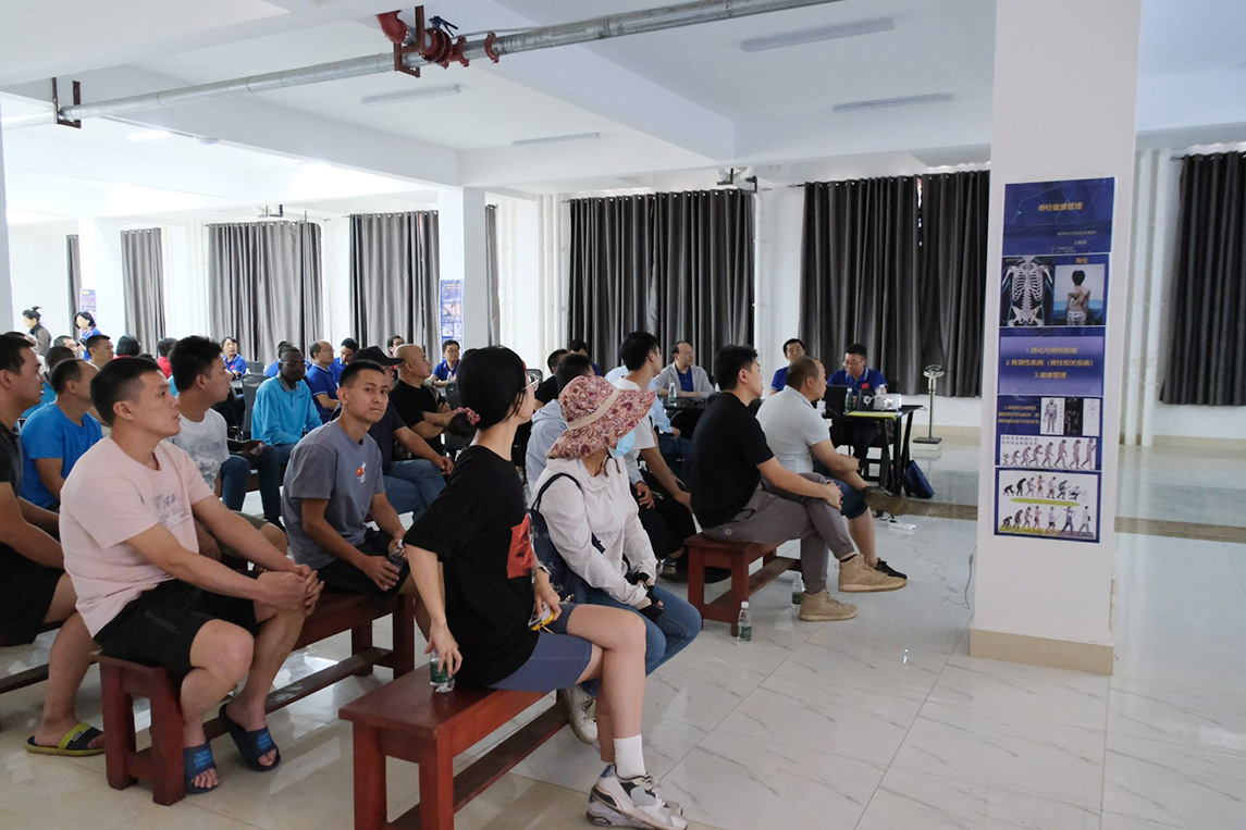 医疗队员王泽帅从基本概念、国内现状、评估筛查、识别处理、内科干预、健康指导和认知误区等方面对如何科学防治脑卒中进行了细致的讲解。医疗队员王筱锋讲述了脊源性疾病的演变、起因和诊断措施,分享了多种积极的脊柱健康管理方法。两位专家均采用了大量经典的临床案例,内容深入浅出,解析具体透彻,参加讲座的赞陶员工均受益匪浅。