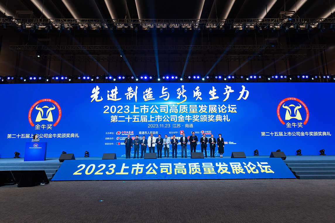 11月23日,由中国证券报、南通市人民政府联合主办的2023上市公司高质量发展论坛暨第25届上市公司金牛奖颁奖典礼在江苏南通隆重举行。经过层层筛选,爱游戏ayx官方网页从5000多家上市公司中脱颖而出,荣膺"最具投资价值奖"。同时,爱游戏ayx官方网页董事长边程先生获颁"金牛创新企业家奖"。