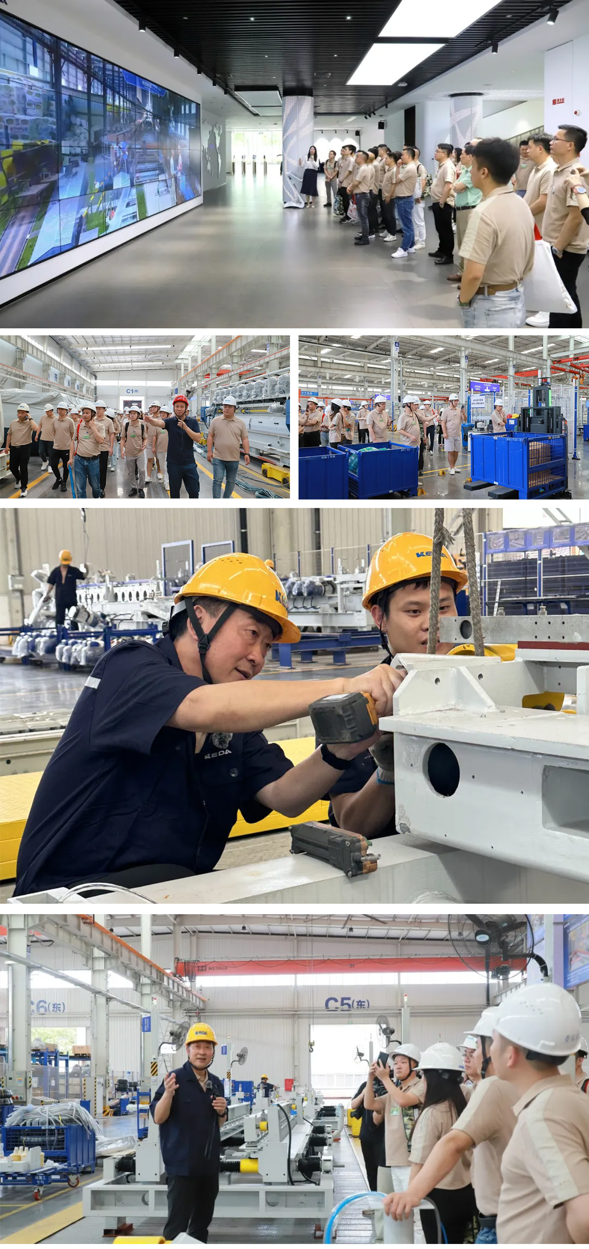 学员们先参观了爱游戏(中国)展厅,随后深入到爱游戏(中国)车间,参观了解设备的生产安装情况。在爱游戏(中国)陶机深加工车间,鲍公换上爱游戏(中国)工装与工人们一起安装设备。通过现场观察及亲身实践,鲍公为学员们“解密”了爱游戏(中国)磨边线产能从以往的年产30-40条飙升至今天的1000多条的真相:现代化的厂房、流水生产线及自动化的工具。从而实现了生产效率的显著提升!同时在此过程中,鲍公也重新体验了创业时的那份激情与初心。
