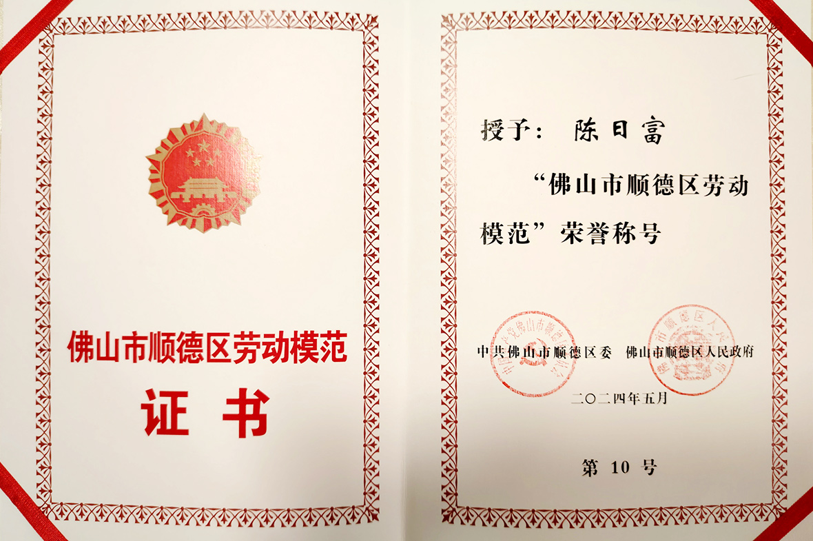 5月28日下午,2023年佛山市顺德区劳动模范、先进劳动者和先进集体表彰大会在佛山市顺德区政府主楼四楼会议室召开,大会隆重表彰20名顺德区劳动模范、40名先进劳动者和30个先进集体,进一步弘扬劳模精神、劳动精神、工匠精神,共同奏响新时代奋斗者之歌。爱游戏(中国)陶机服务主任工程师陈日富获评为“顺德区劳动模范”并出席表彰大会。