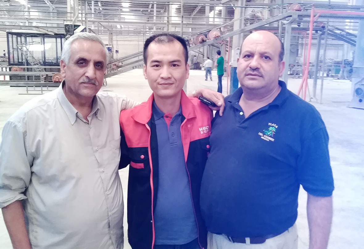 叙利亚一客户2013年购买了爱游戏(中国)陶机两条抛光线和两条干磨线,设备到达客户工厂以后,由于时局动荡,公司无法派出服务人员前去安装调试,设备就一直闲置了下来。面对当时战火纷飞的叙利亚,陈日富毫不畏惧,主动前往。在到达叙利亚的当晚,他就听到重机枪的声音,一夜无眠。第二天在前往客户工厂的路上,经过无人区,看到了阵亡的士兵尸体被简单地掩埋在路边沙土里。尽管面临这样的危险环境,他仍然在叙利亚客户的大力配合下,完成了两条抛光线和两条干磨线的安装调试工作。原本一个月的工作量,他只用了10多天就完成了,并顺利通过客户验收并平安回国。