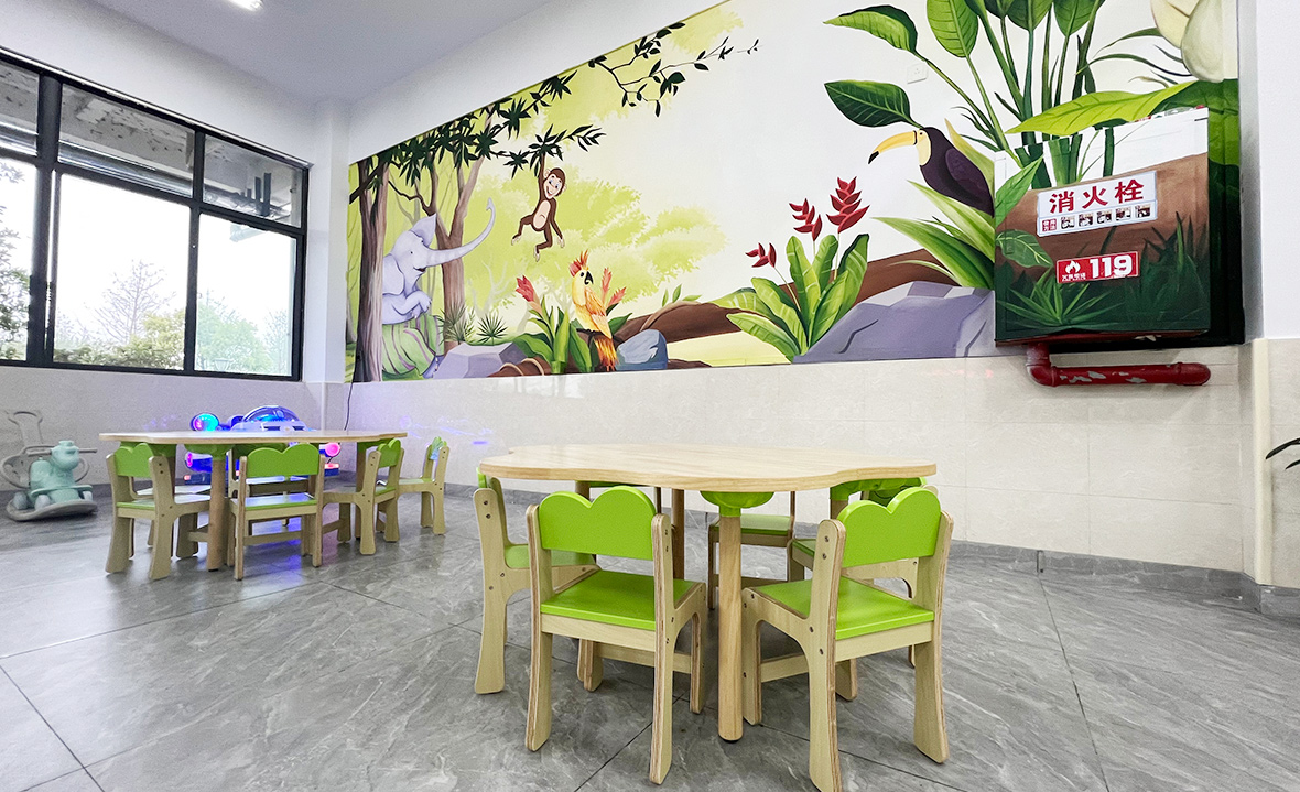▲安徽基地的“家庭餐厅”,贴心地划分出员工、家属、客餐三块就餐区域。家属就餐区特为孩童就餐设置了游乐区。
