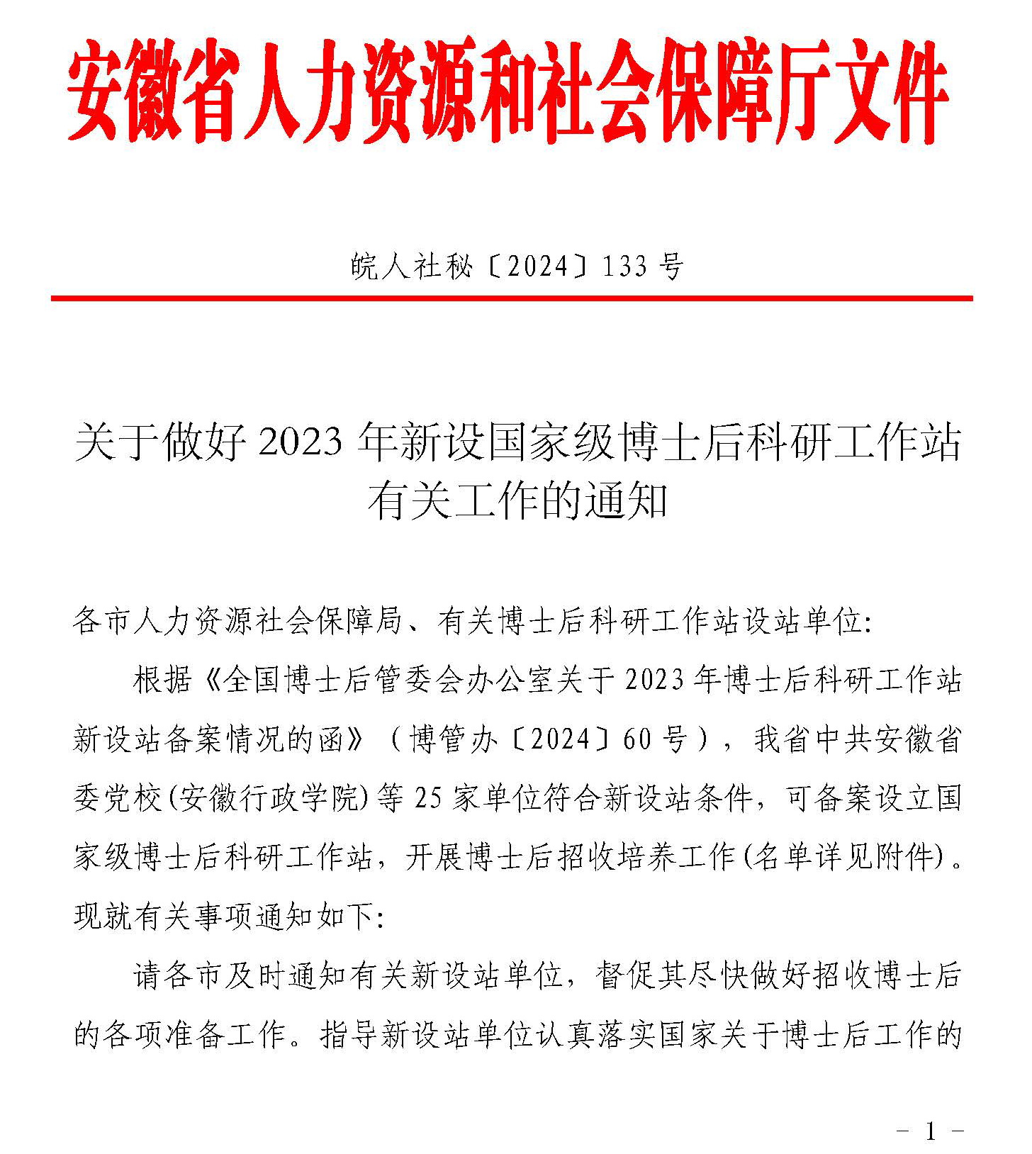 近日,安徽省人力资源和社会保障厅印发了《关于做好2023年新设国家级博士后科研工作站有关工作的通知》,经马鞍山市人社局、安徽省人社厅审核推荐,安徽爱游戏(中国)洁能股份有限公司获批设立国家级博士后科研工作站(以下简称:“国站”)。