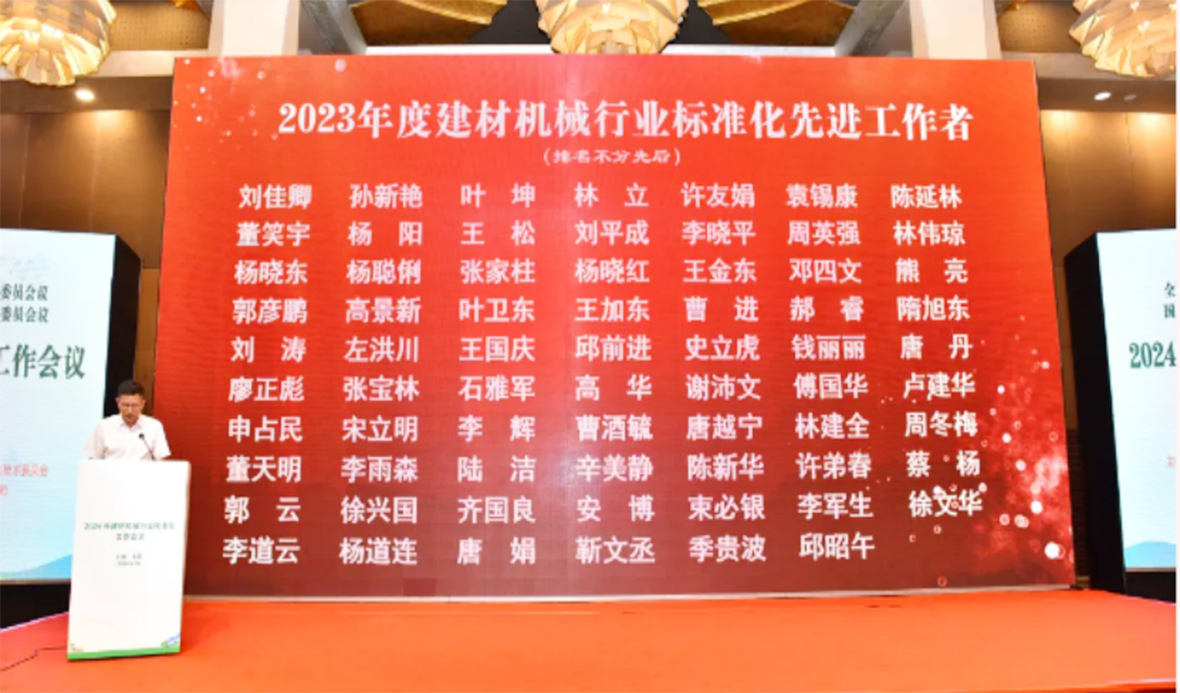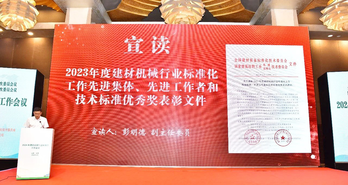 会上,国家建筑材料工业机械标准化技术委员会副主任委员彭明德宣读了《关于表彰“2023年度建材机械行业标准化工作先进集体、先进工作者和优秀技术标准奖”的通知》。