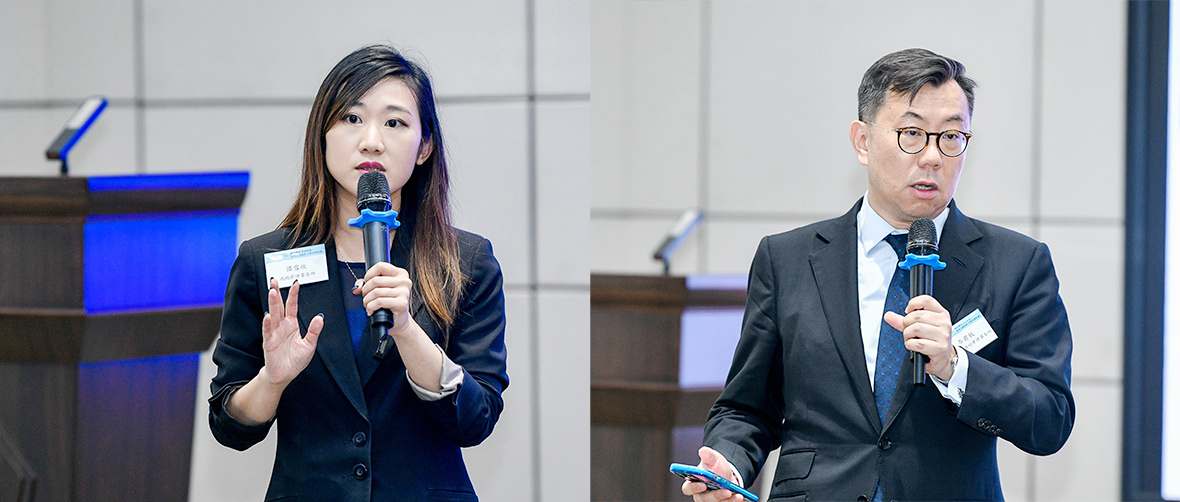 贝克·麦坚时律师事务所香港办事处合伙人、香港律师会理事会成员岑君毅及鸿鹄律师事务所高级助理律师、香港律师会大中华法律事务年青律师附属委员会主席谭雪欣代表香港法律服务考察团,介绍了香港在法律服务方面的优势及进行了经验分享。