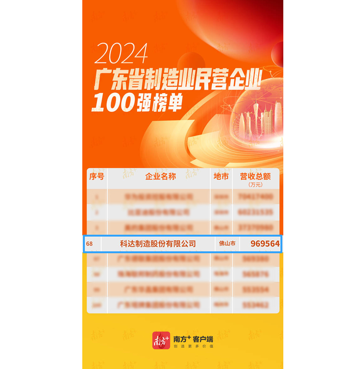 10月29日,广东省工商业联合会正式发布“2024广东省民营企业100强”系列榜单。