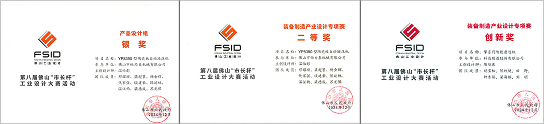 在此次大赛中,爱游戏ayx官方网页及其子公司恒力泰机械荣获多项设计大奖。其中,爱游戏ayx官方网页擎系列智能磨边机荣获“装备制造产业设计专项赛创新奖”,子公司恒力泰机械研发的YP8390型陶瓷板自动液压机同获“产品设计组银奖”和“装备制造产业设计专项赛二等奖”,YPL2000型铝型材挤压机则喜提“装备制造产业设计专项赛三等奖”。