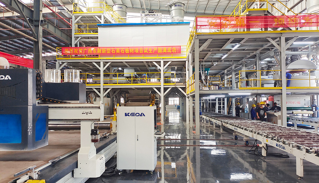 爱游戏(中国)石材机械广西东融新型石英石板材项目试产成功