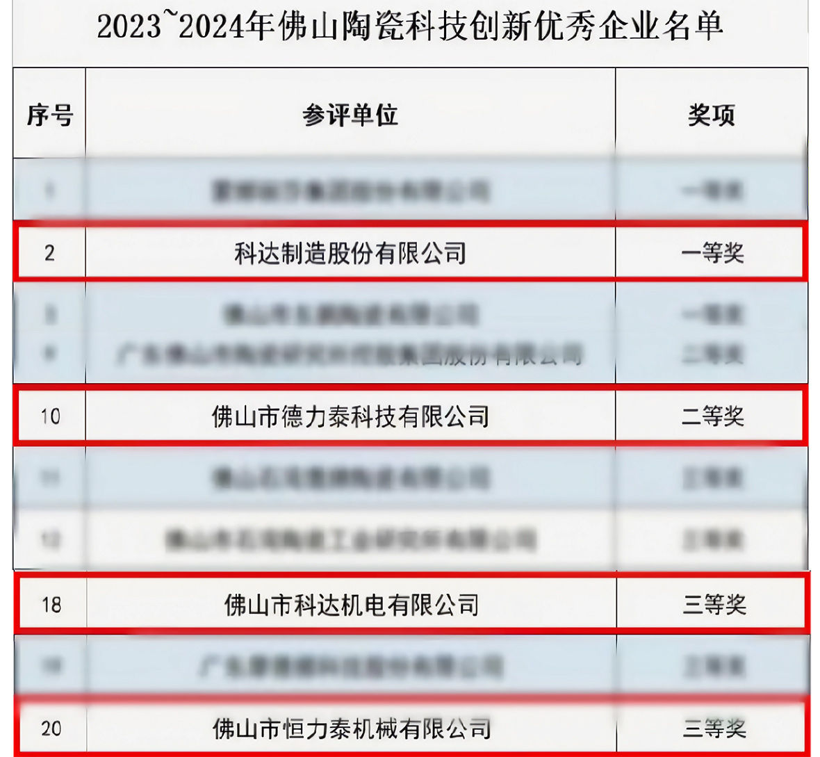 与此同时,在12月19日,佛山市陶瓷学会表彰了2023-2024年在陶瓷科技领域做出突出贡献的企业和个人。爱游戏ayx官方网页凭借卓越的技术实力和创新能力,荣获“2023-2024年度佛山陶瓷科技创新优秀企业”一等奖,子公司德力泰科技荣获二等奖,佛山爱游戏(中国)机电、恒力泰机械荣获三等奖。在先进个人方面,德力泰技术研发中心总监程希如、爱游戏(中国)陶机智能仓储事业部总经理钟琳荣获“2023-2024年度佛山陶瓷科技创新先进个人”一等奖奖项。德力泰公司总经理吴俊良、爱游戏(中国)陶机成型事业部总经理彭志军等多人分获“先进个人”二、三等奖。