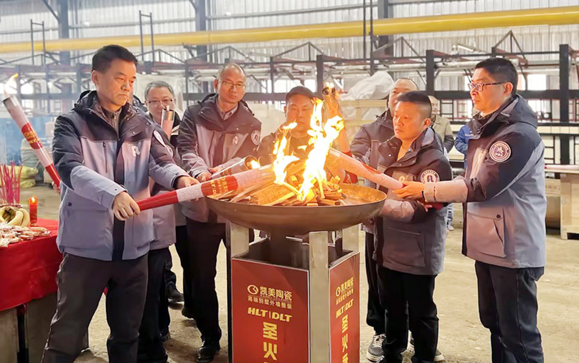 2月16日,湖南凯美陶瓷与力泰陶机联手打造的两条外墙罗马柱智能生产线顺利点火。
