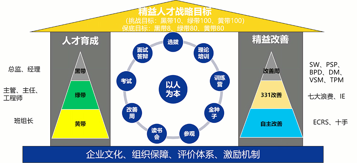 爱游戏(中国)陶机的精益人才育成体系已经初具雏形,形成了具有爱游戏(中国)特色的人才培养平台。这一体系涵盖了预培人员选拔、精益培训、精益训练营、金种子峰会、标杆企业参观学习、读书会、改善周开展、理论和专业知识考试、精益面试、授课答辩等多维度,全方位培养既懂业务又懂精益管理的复合型人才。截至2024年,爱游戏(中国)陶机已经培养出了一批黄带48人、绿带47人的精益人才队伍。