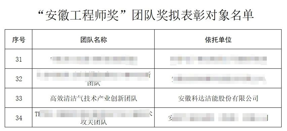 近日,安徽省人力资源和社会保障厅发布了《关于“安徽工程师奖”拟表彰对象的公示》,安徽爱游戏(中国)洁能公司“高效清洁气化技术产业创新团队”凭借在工程技术领域的突出贡献,成功入选。