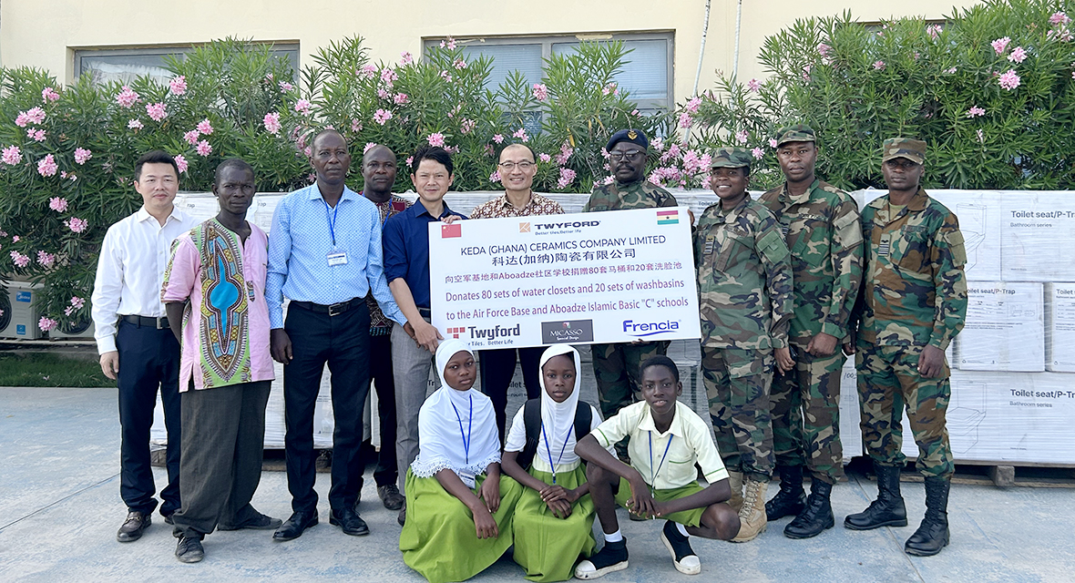 访问伊始,童大使出席了特福加纳陶瓷向西部地区空军基地和Aboadze Islamic Basic "C" School捐赠80套马桶和20套洗脸池的仪式。