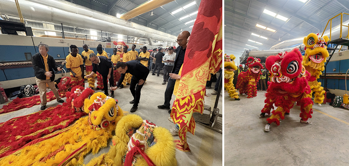 在仪式现场,舞狮跃动、人声鼎沸,一派喜气洋洋。参加活动的中外员工们纷纷拿出手机,记录这一值得纪念的时刻。
