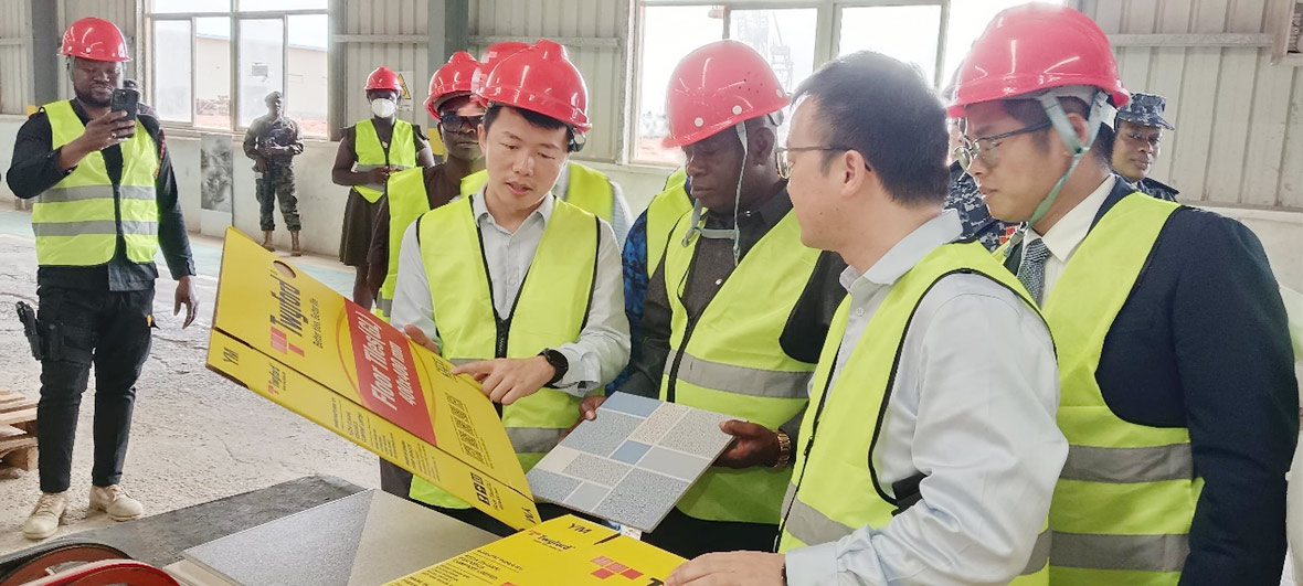 随后,在公司管理层的陪同下,副部长实地参观了瓷砖与洁具生产线,对特福加纳陶瓷在技术引进、本地原料利用、工艺流程管控等方面给予了充分肯定。当他亲眼看到印有“Made in Ghana”的瓷砖产品,并得知这些产品不仅广泛销往非洲多国,还远销欧美市场时,脸上更是洋溢出赞许与骄傲。