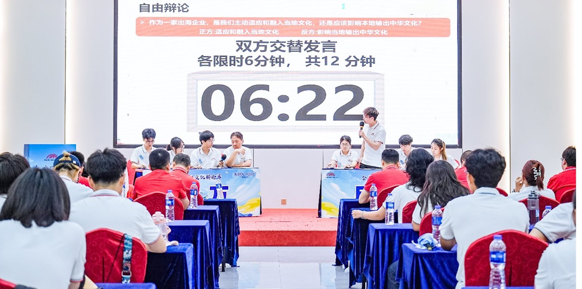 在结营仪式上,高校毕业生围绕“作为一家出海企业,是我们主动适应和融入当地文化,还是应该影响本地输出中华文化?”的辩题开展辩论,正反双方以逻辑为矛、数据为盾,通过观点碰撞促进“特”长生心灵契合,为凝聚思想共识、共促企业发展注入了青春力量。