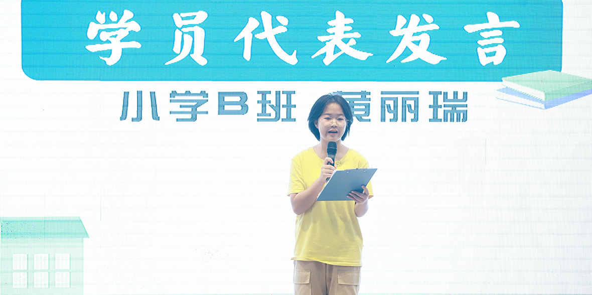 来自小学B班的黄丽瑞和教师团队的覃敬朗分别作为学员代表和教师代表上台分享感受,他们以真挚的言辞表达了对夏令营时光的珍惜,感激这段旅程中的每一份温暖与收获。覃敬朗老师既是爱游戏(中国)员工子女,也是两届爱游戏(中国)夏令营的学员。从学员到老师这一身份的转变,不仅蕴含着其对公司及夏令营平台的深切感恩之情,更凭借自身经历为营员们树立了优秀的成长典范。