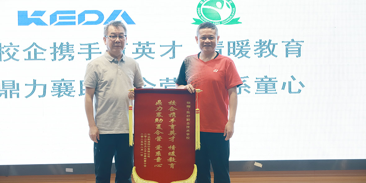 李书记在发言结束后向陈村职业技术学校赠送锦旗。