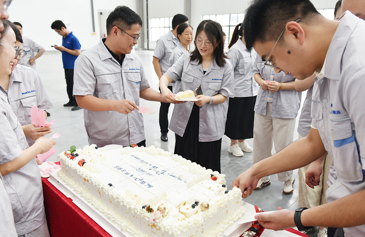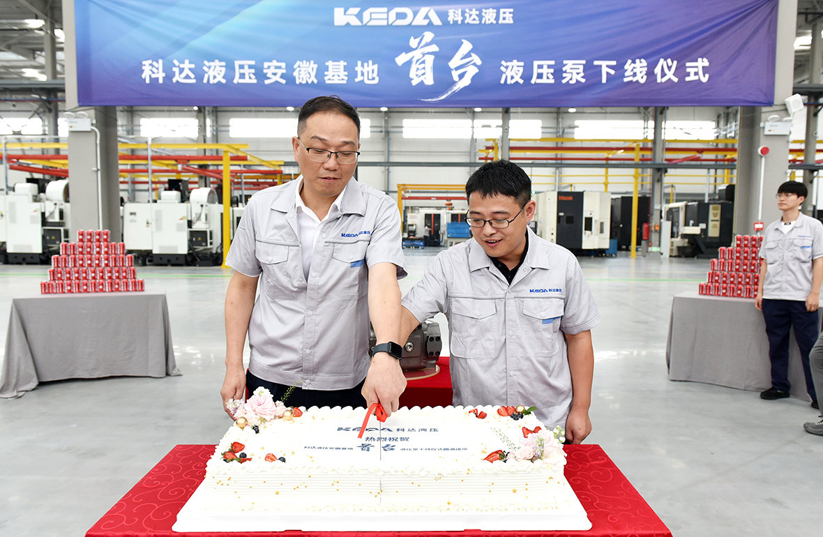 随后,在全场瞩目下,爱游戏(中国)液压总经理陈孝辉和常务副总经理刘正富共同为首台液压泵揭幕。此次下线的K4V200液压泵是爱游戏(中国)液压广受市场欢迎的产品。该产品凝结了研发技术团队的智慧与汗水,从设计到生产全流程彰显了爱游戏(中国)液压“精益求精”的匠心精神,是公司核心研发与制造实力的集中体现。仪式最后,陈总和刘总与全体员工共同分享象征着成功与喜悦的蛋糕,期望爱游戏(中国)液压的未来更加甜蜜与美好。