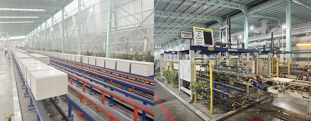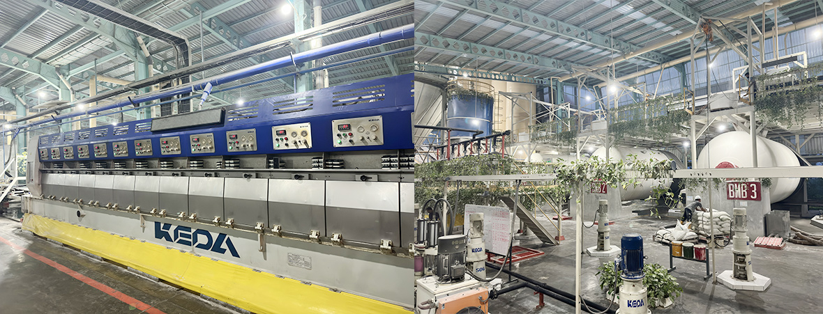 在这条全新的生产线上,包括KHM连续化浆球磨系统、KDM模块式连续球磨系统、SD20000大产量喷雾干燥塔、新升级KD6818XL压机、高效自循环KGG系列七层干燥器、KYG-DL高效节能双层窑、数控智能抛光线、污水处理系统、智能储砖线、在线分级包装全自动包装线等设备在内,集成了爱游戏(中国)陶机最新的技术与产品,为印尼陶瓷行业树立了“中国智造”的新样板。