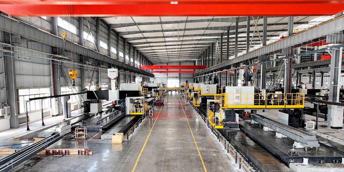 在佛山爱游戏(中国)装备的三号车间,近20台全新的五面体龙门加工中心形成了华南地区独树一帜的龙门加工集群。其8~18米的超长加工长度、3~4米的加工宽度、约2米的立体加工高度,主要应用于机架类、横梁类的大型结构件,包括大型铸锻件的加工。龙门加工中心具有刚性强、功率扭矩大、稳定性高的特点,且机床自带高精度系统,加工精度精确到0.01mm,相当于发丝直径的1/10。从切削到成型全程稳定输出,确保工件尺寸公差完美达标。
