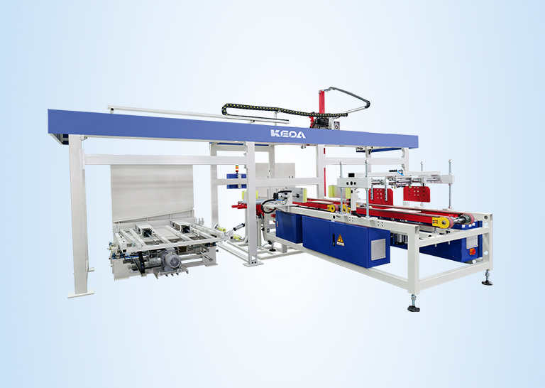 本设备将砖包按一定秩序堆放在砖架上,由叉车转运入仓;也可以通过翻托装置,将砖架上的砖垛转移到木 托上,再由叉车转运入仓。