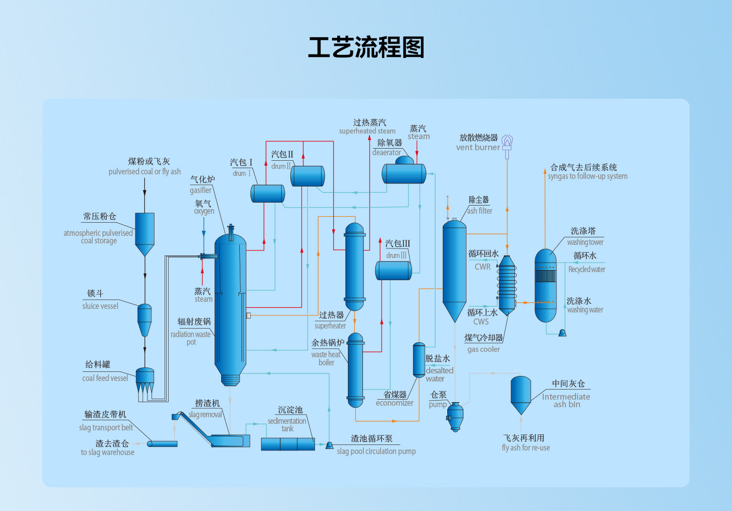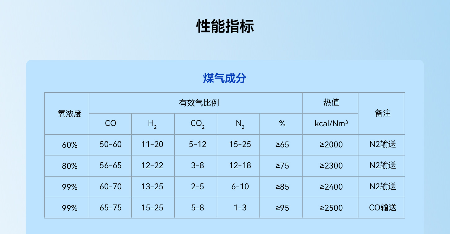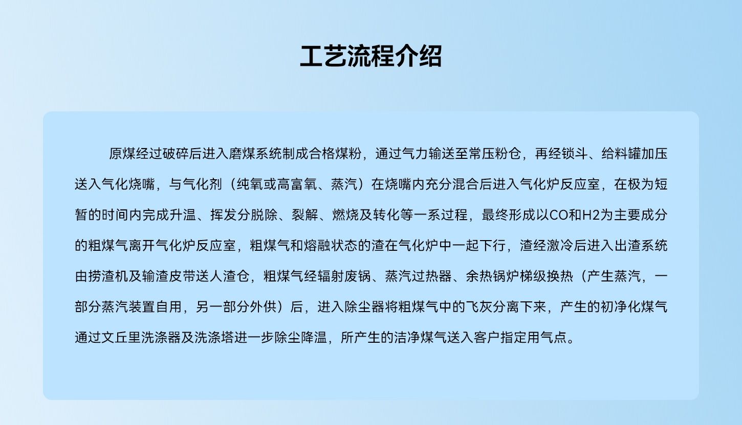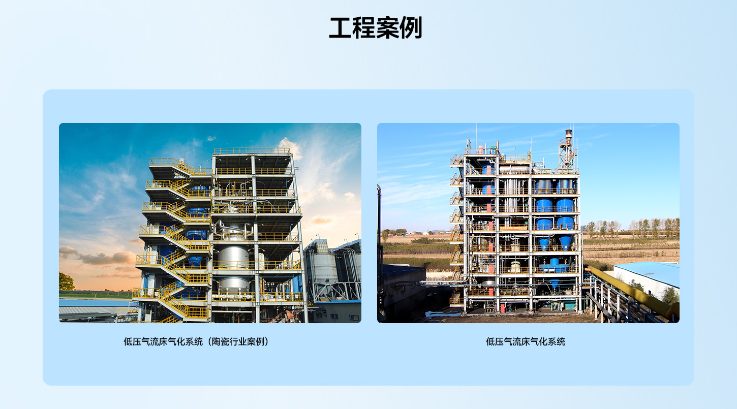 采用空气气化和富氧气化,为有色冶金、建材、焦化等行业提供燃料气,也可为合成氨、甲醇、煤制氢等行业提供原料气。
