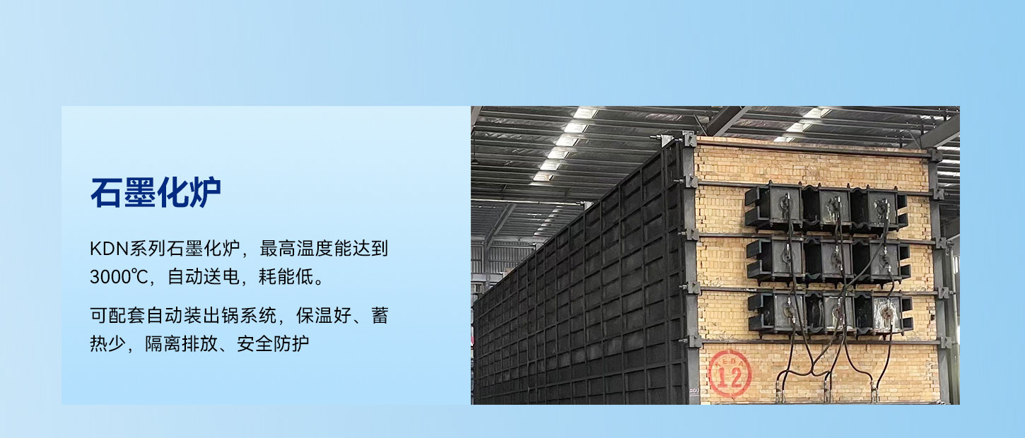 KDN系列石墨化炉,最高温度能达到3000℃,自动送电,耗能低; 可配套自动装出锅系统,保温好、蓄热少,隔离排放、安全防护。