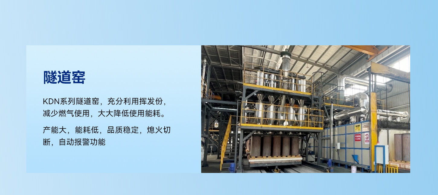 KDN系列隧道窑,充分利用挥发份,减少燃气使用,大大降低使用能耗; 产能大,能耗低,品质稳定,熄火切断,自动报警功能。