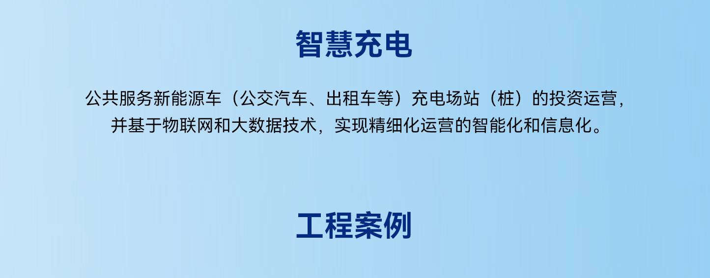 公共服务新能源车(公交汽车、出租车等)充电场站(桩)的投资运营,并基于物联网和大数据技术,实现精细化运营的智能化和信息化。