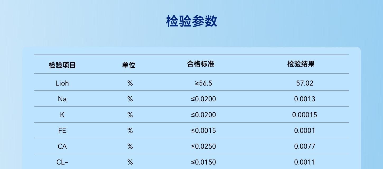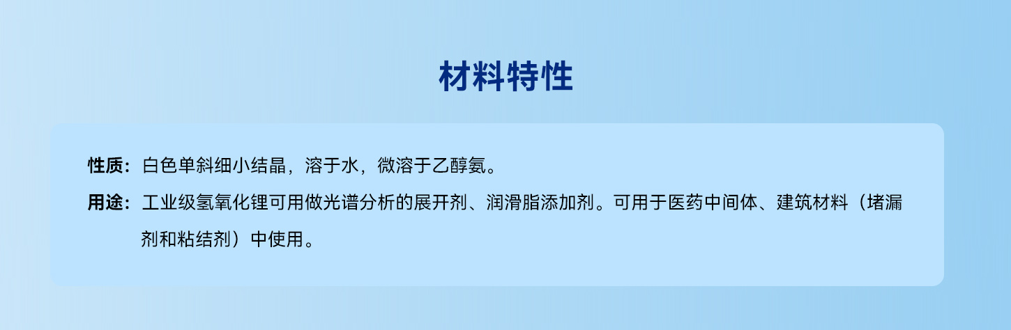 化学式:LiOH 分子量:23.95 CAS-No.:1310-65-2 密度:1.45 g/cm³ 熔点:471 ℃ 沸点:925℃