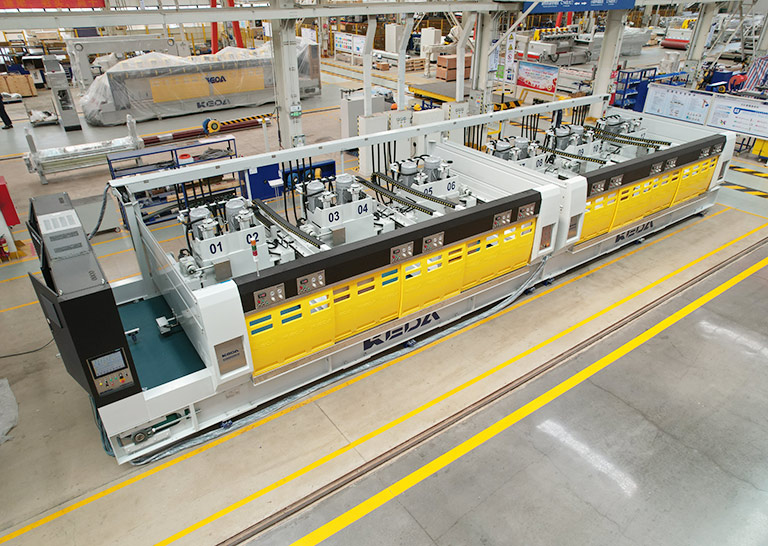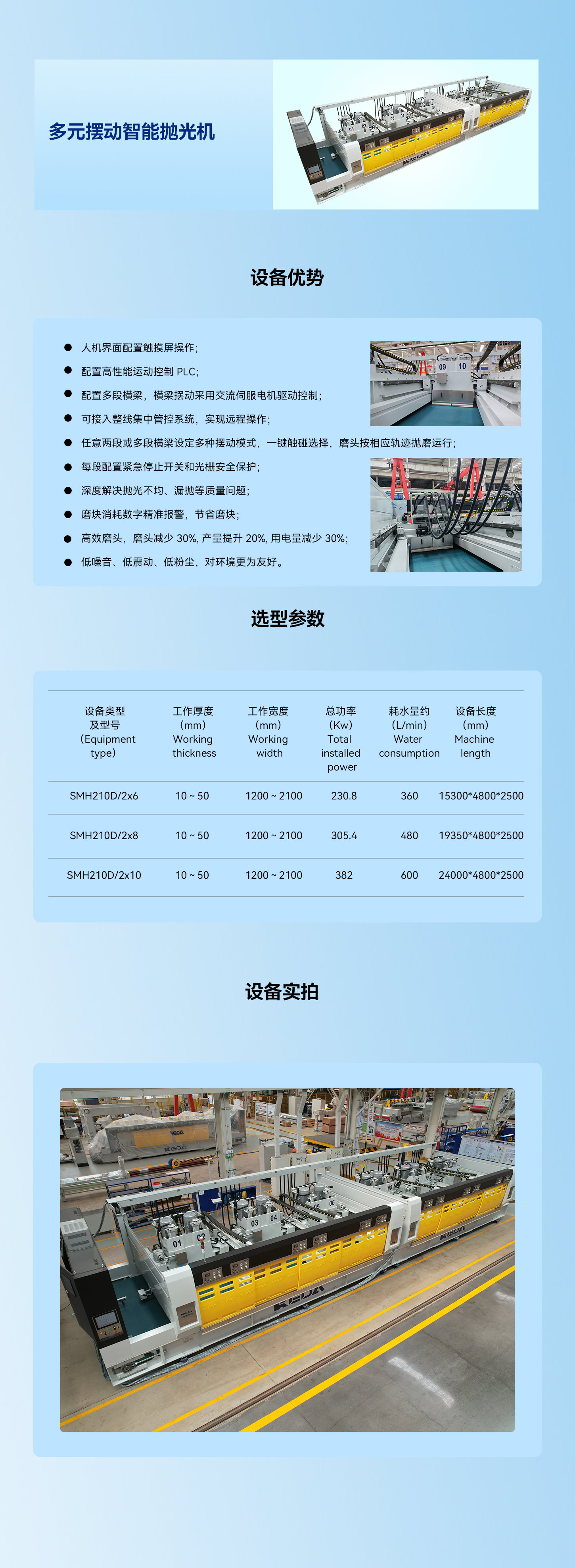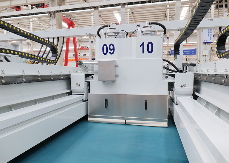 配置多段摆动抛光头,通过人机界面根据磨具排号选择横梁摆动方式,采用顺序摆,一字摆,交叉摆等多段摆动方式,能够有效解决高端石材抛光过程中抛光不均、漏抛等质量问题,实现抛光面的高效覆盖。